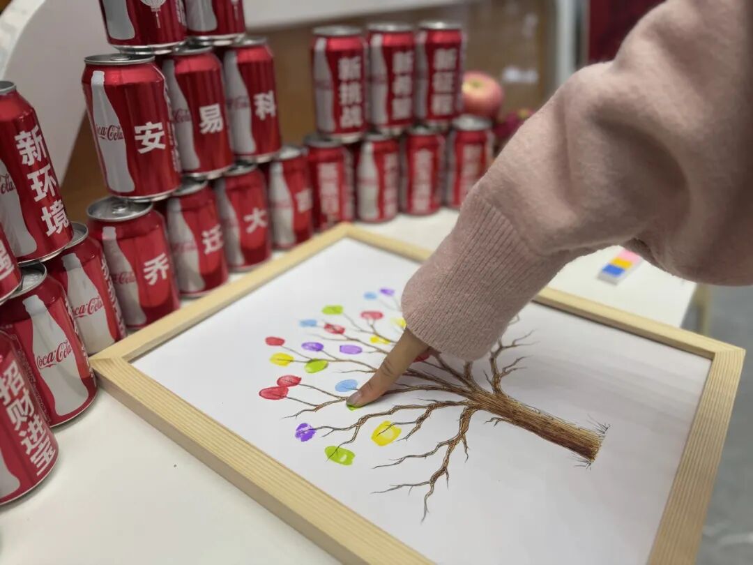 公司员工在象征“安易科之树”的画布上